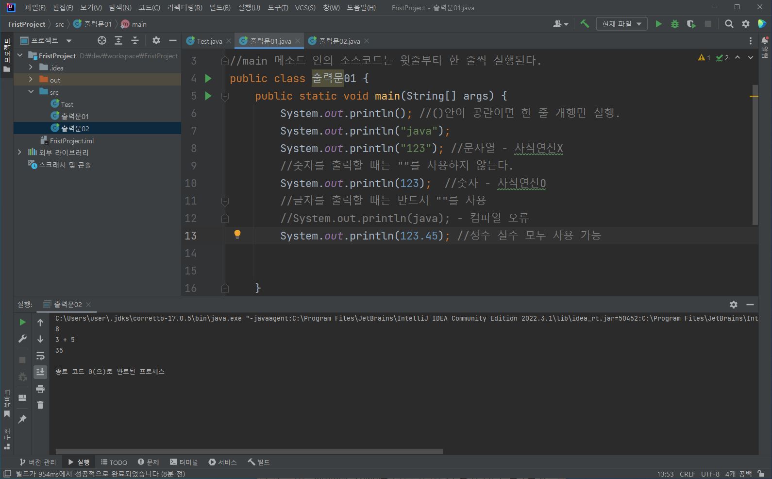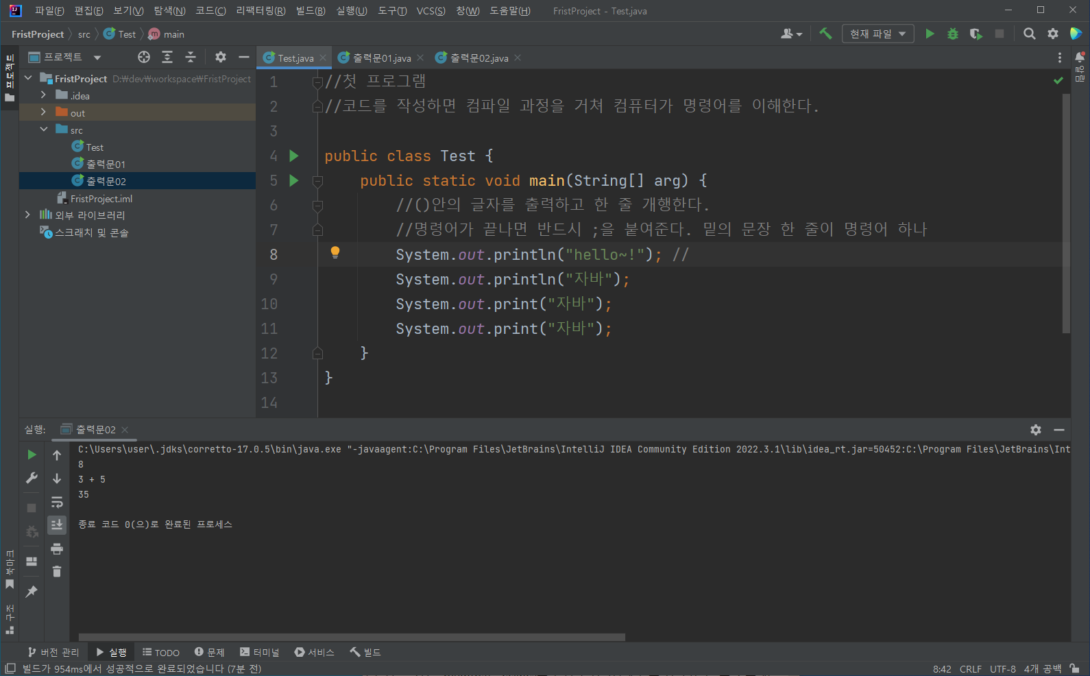 230116 ์๋ฐ ์ฒซ ์ฝ๋ ์์ฑ