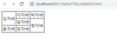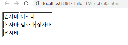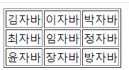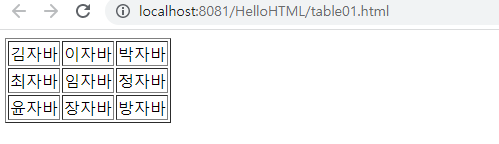 <table border="1"> <!-- ๊ธฐ๋ณธ์ ํ ๋๋ฆฌ๊ฐ ์์ -->
