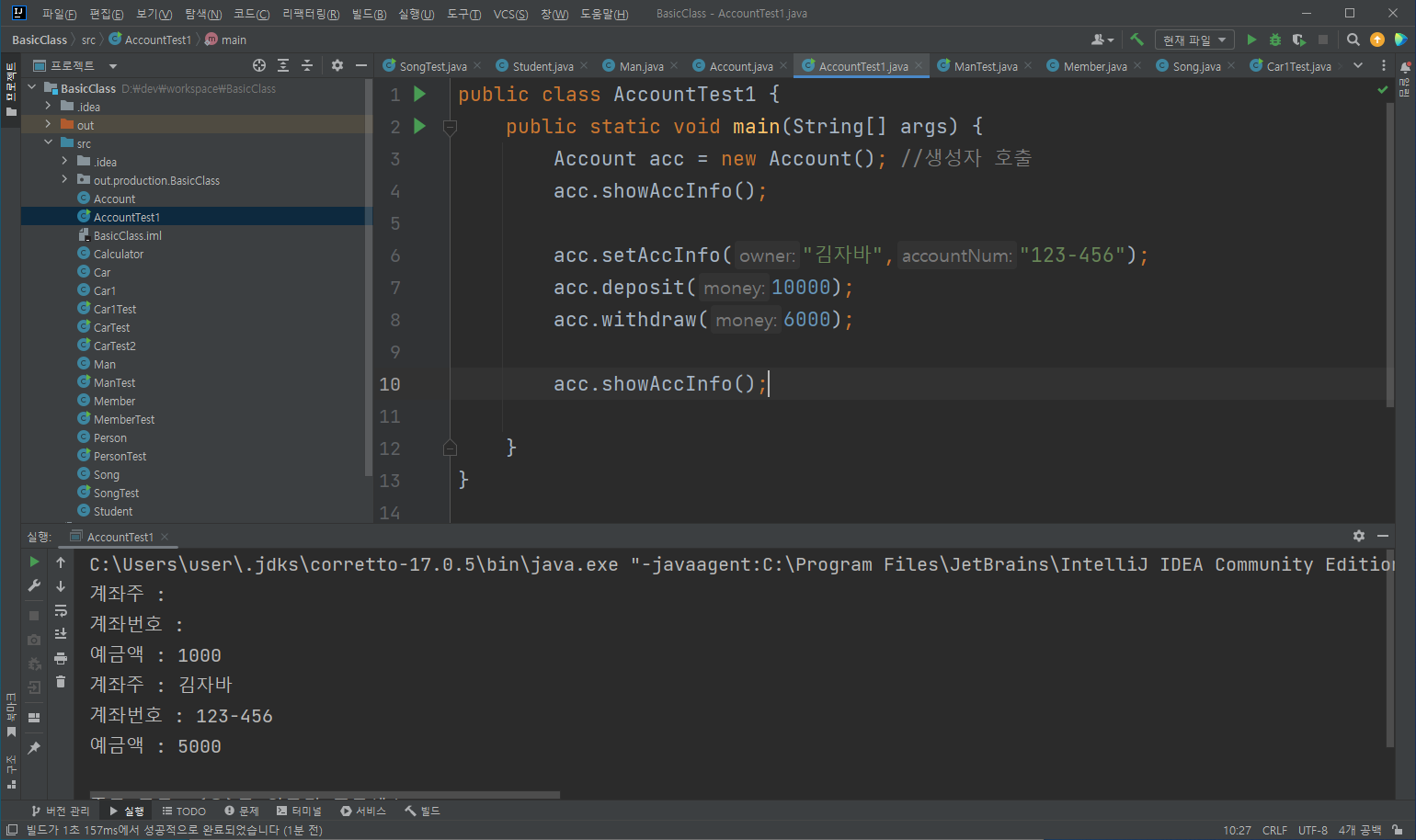 acc.setAccInfo("๊น์๋ฐ","123-456");