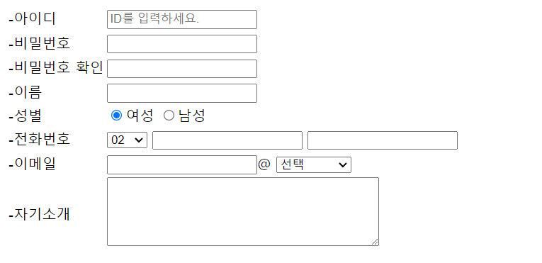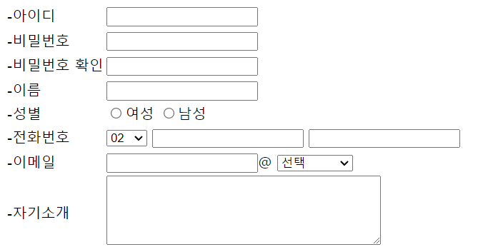 <input type="text"> <!-- ๋ซ๋ ํ๊ทธ ์์--><br>